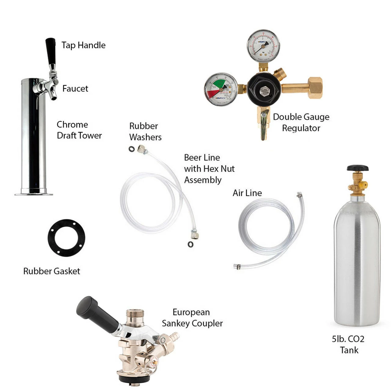 But that’s not all. This kit convenient comes with everything else you’ll need to set up your kegerator. That includes a 5 lb. aluminum CO2 tank (ships empty), a double-gauge CO2 regulator, and all lines and connectors.