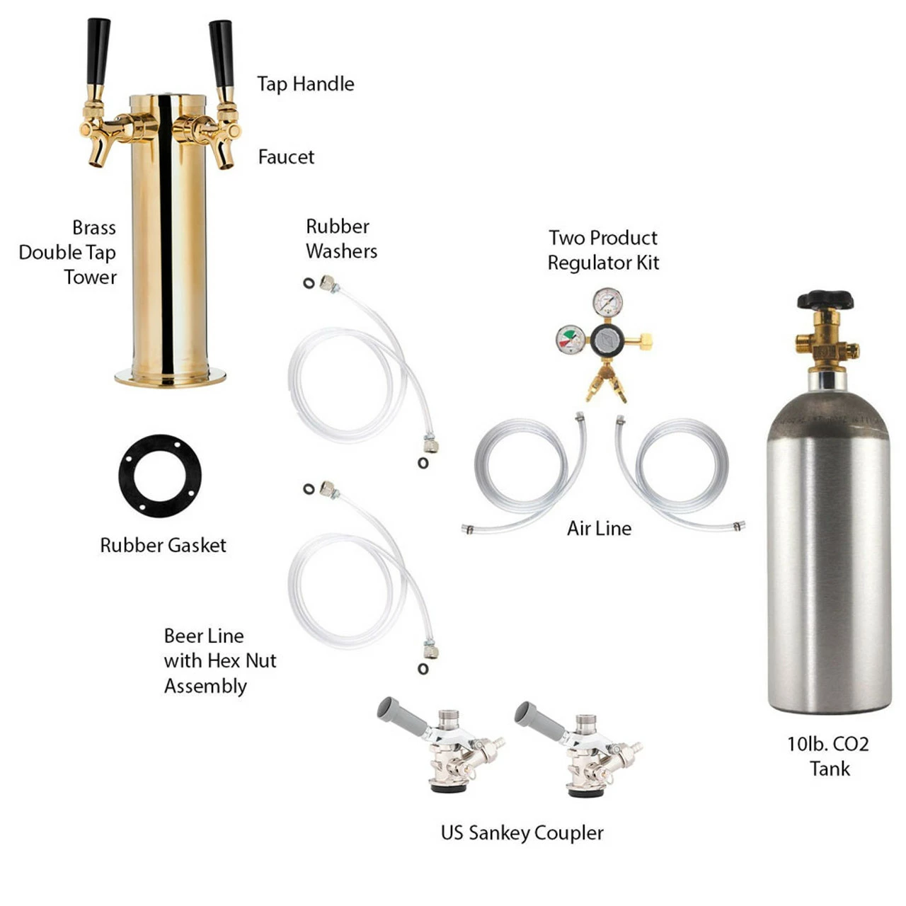 When you order this item, you’ll get everything you need to build your own homemade kegerator, including an aluminum 5 lb. CO2 air tank, a two-product CO2 regulator, and two US Sankey (D system) keg couplers that fit most domestic beers. To find out if your favorite beers use the D system, check out our .