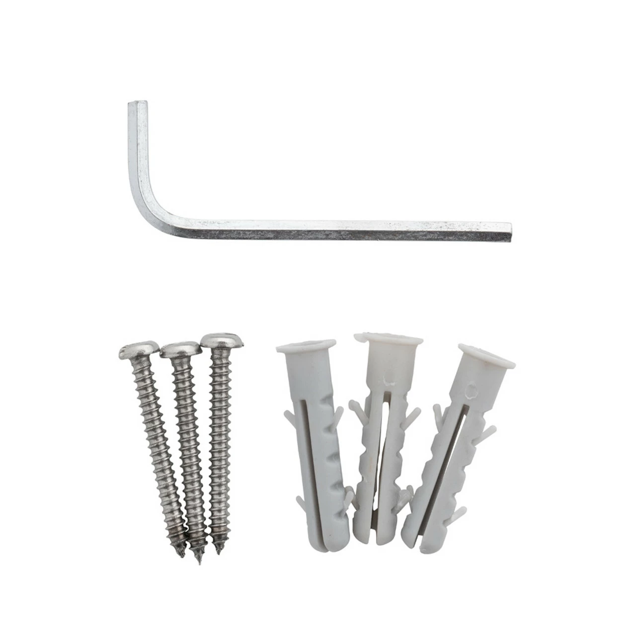 The assembly includes all hardware, including an exterior flange and coupling nut with a sleek chrome-plated finish. When you order this item, you’ll receive three wall anchors and screws, as well as a wrench for installation.
