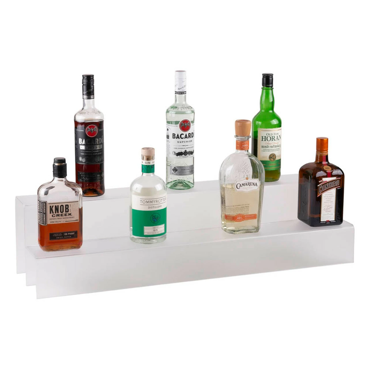 Bring some organization to your back bar with this 2 tiered liquor bottle display shelf. Made from durable translucent acrylic, these bar shelves will not bend or buckle, and are easy to clean. These shelves are exclusive to KegWorks and made in the USA.