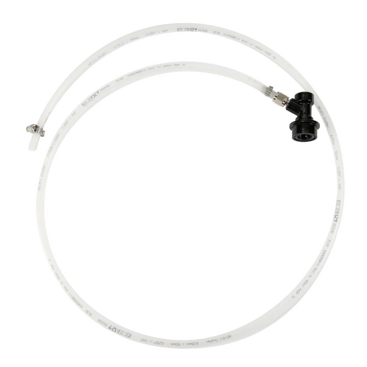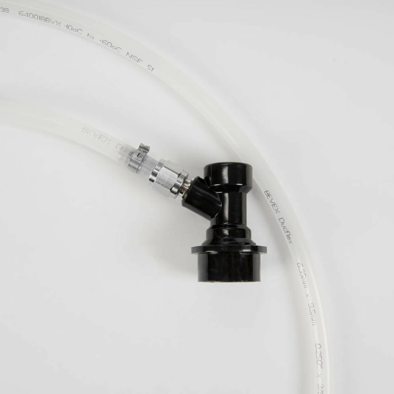 This set, which includes 5 feet of 1/4″ ID barrier line with a ball-lock disconnect on one side and a screw clamp on the other. This makes it easy to connect your Cornelius keg to the shank in your existing draft system.