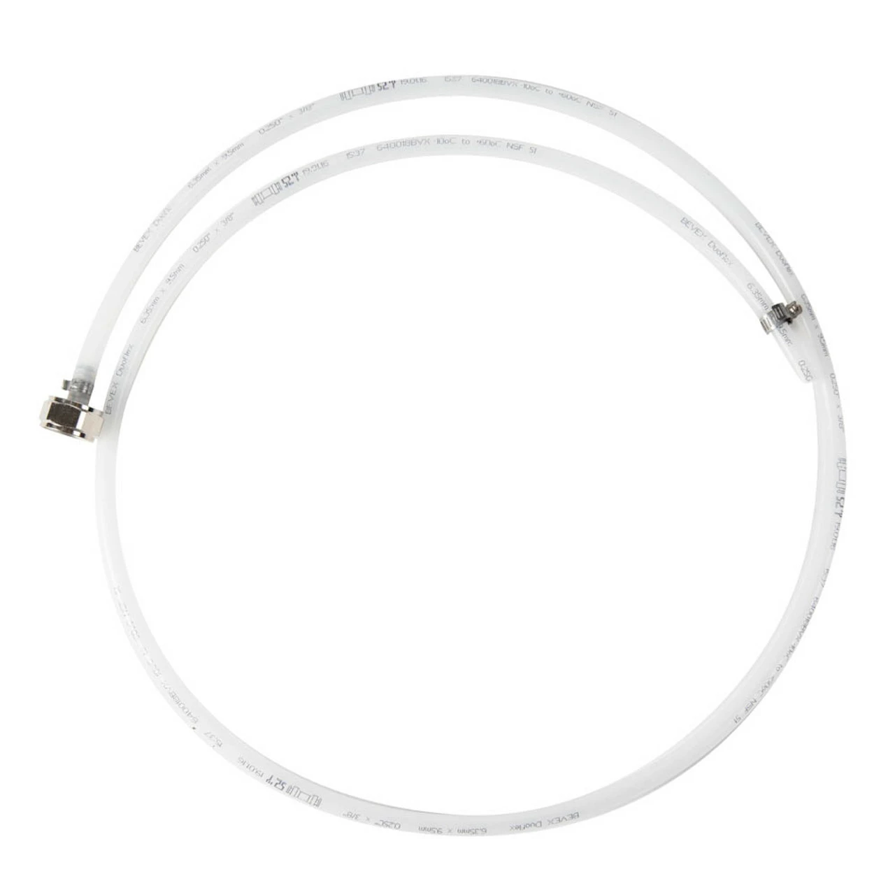 This 1/4″ barrier tubing beverage line jumper includes a stainless-steel tail piece connector on one end and a screw clamp on the other. This barrier line jumper makes it easy to connect your shank to a ball lock disconnect when pouring cocktails, coffee, wine, or kombucha on tap.