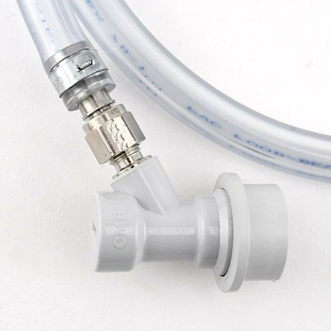 This homebrew kit features everything you need for dependable dispensing. The ball-lock fitting is already firmly attached to one end of the gas line and a screw clamp stands ready to secure the connection to a regulator at the other.