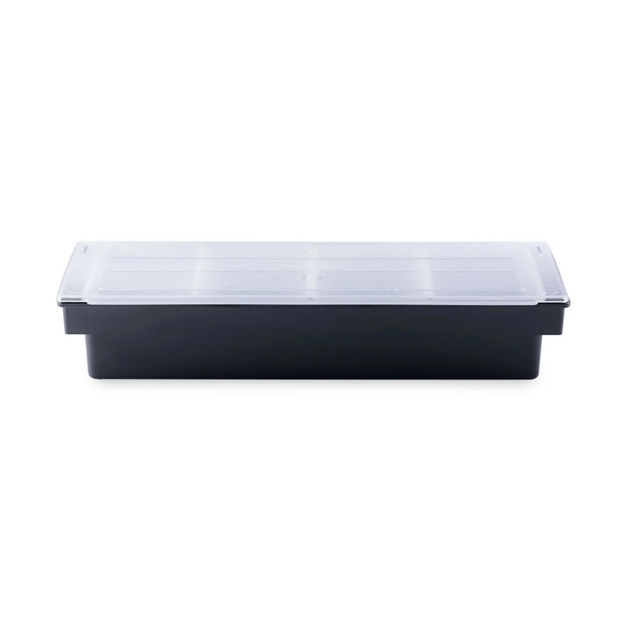 A bartender’s best friend, this bar fruit tray features four compartments and a hinged lid to keep debris and fruit flies away. Constructed from durable, dishwasher-safe ABS plastic the bar condiment holder keeps olives, cherries and citrus wedges within your servers’ reach for speedy and efficient service.