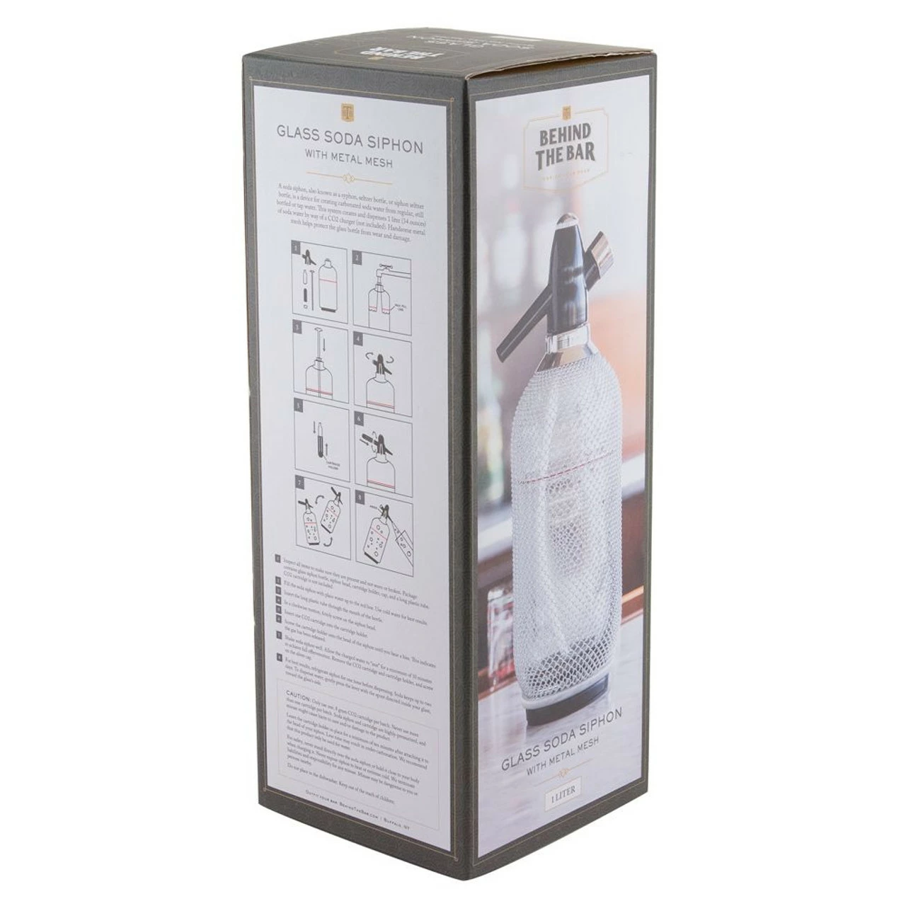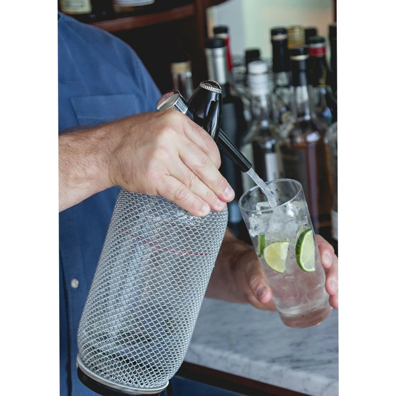 Featuring ultra-durable thick glass construction with a braided aluminum mesh cover for added protection, this soda siphon helps you easily create fresh carbonated water for all of your cocktail creations.
