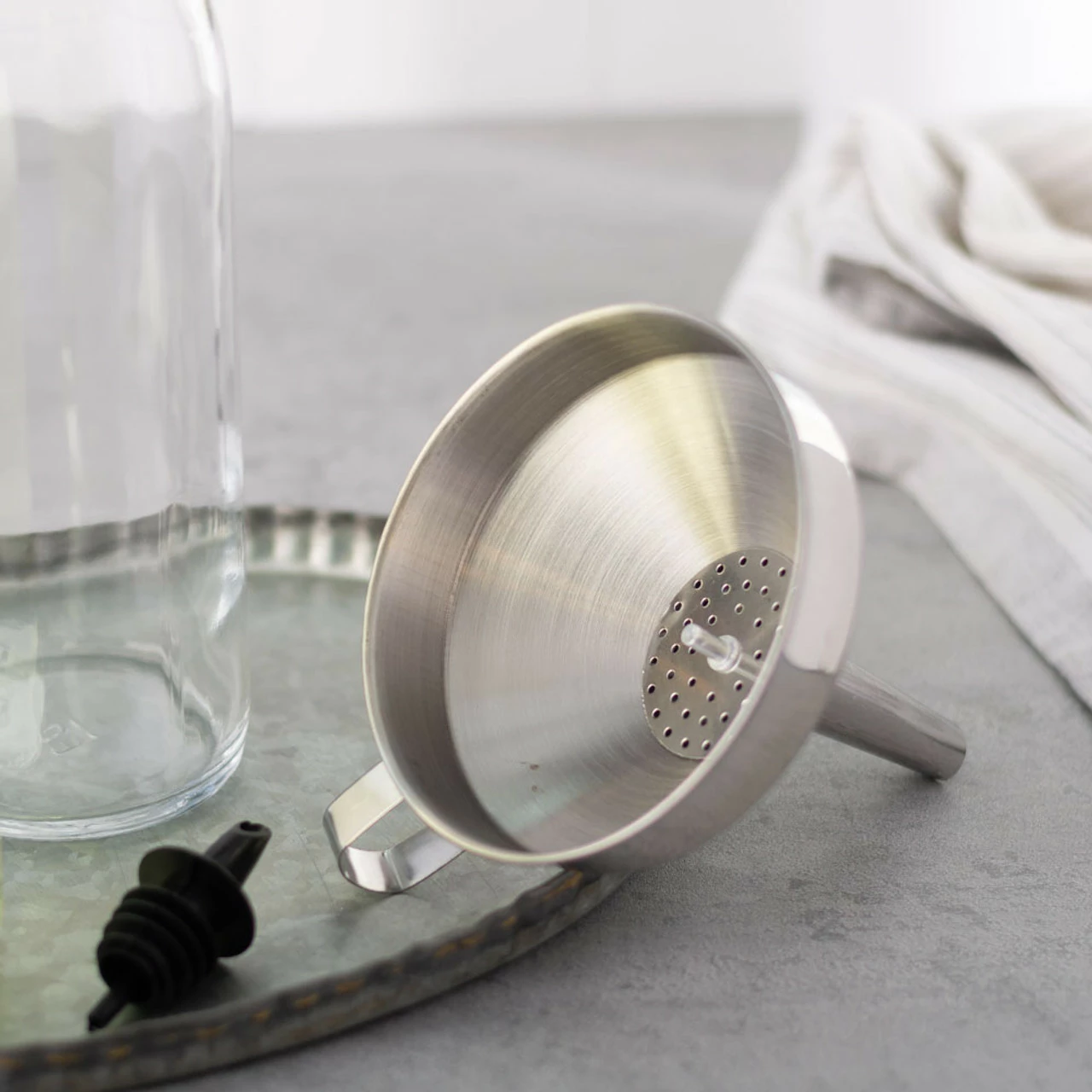 Featuring two swing-top glass bottles, two free-flow bottle pourers, and a stainless steel funnel with a removable strainer, this kit has everything you need to efficiently bottle any of your homemade syrups or mixers.
