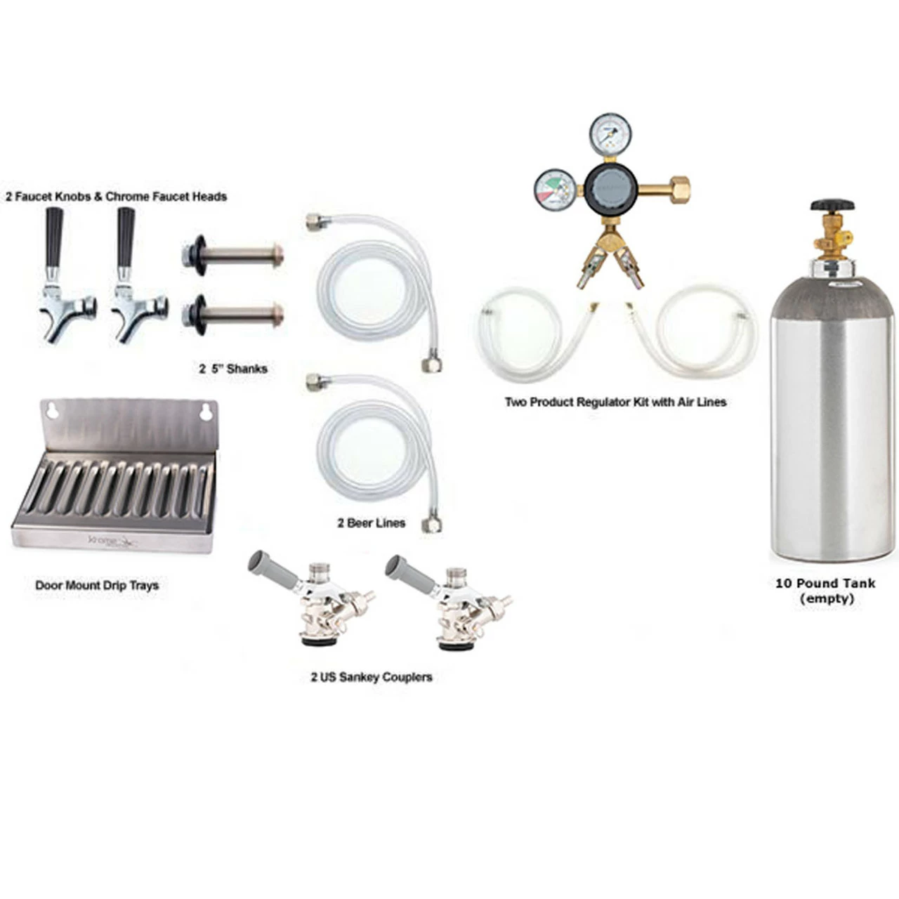 With this item, you won’t have to worry about forgetting to order a piece of equipment or tiny accessory. The deluxe kit comes with everything you need to get started. That includes two faucets, two sets of air and beer lines, two 5-in. shanks, a stainless steel bar drip tray, and a dual-gauge CO2 regulator. It also includes a 10 lb. CO2 aluminum tank with enough capacity to serve 13 to 18 half kegs of beer.