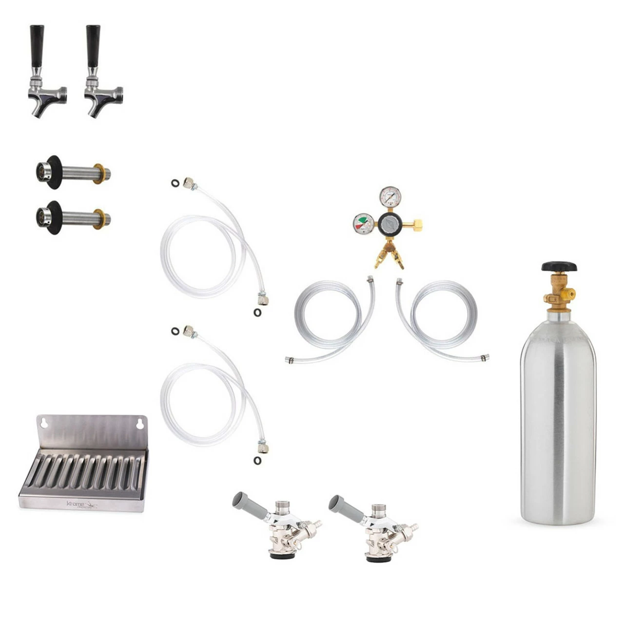With this item, you won’t have to worry about forgetting to order a piece of equipment or tiny accessory. The deluxe kit comes with everything you need to get started. That includes two faucets, two sets of air and beer lines, two 5-in. shanks, a stainless steel bar drip tray, and a dual-gauge CO2 regulator. It also includes a 5 lb. CO2 aluminum tank with enough capacity to serve 6 to 8 half kegs of beer.