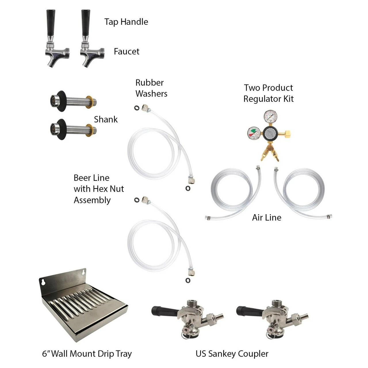 This convenient kegerator kit comes with nearly everything you need to build your kegerator, including two faucets, two sets of air and beer lines, two 5-in. shanks, and a dual-gauge CO2 regulator. You’ll also receive a D system US Sankey keg coupler that fits most domestic kegs. Be sure to check our to make sure this is the one you’ll need for your keg.