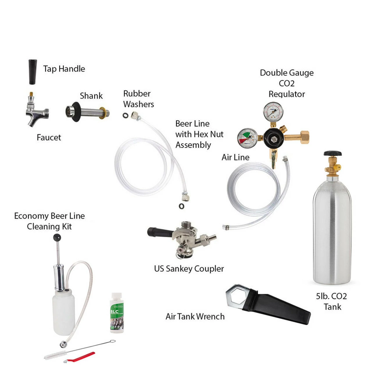 We’ve selected all the high-quality components you need, so you can save time researching and go right to building the kegerator of your dreams. You’ll get everything including an aluminum CO2 tank, beer faucet, and even a stainless steel drip tray. This item also includes a beer line cleaning kit that helps keep your beer tasting fresh and delicious.