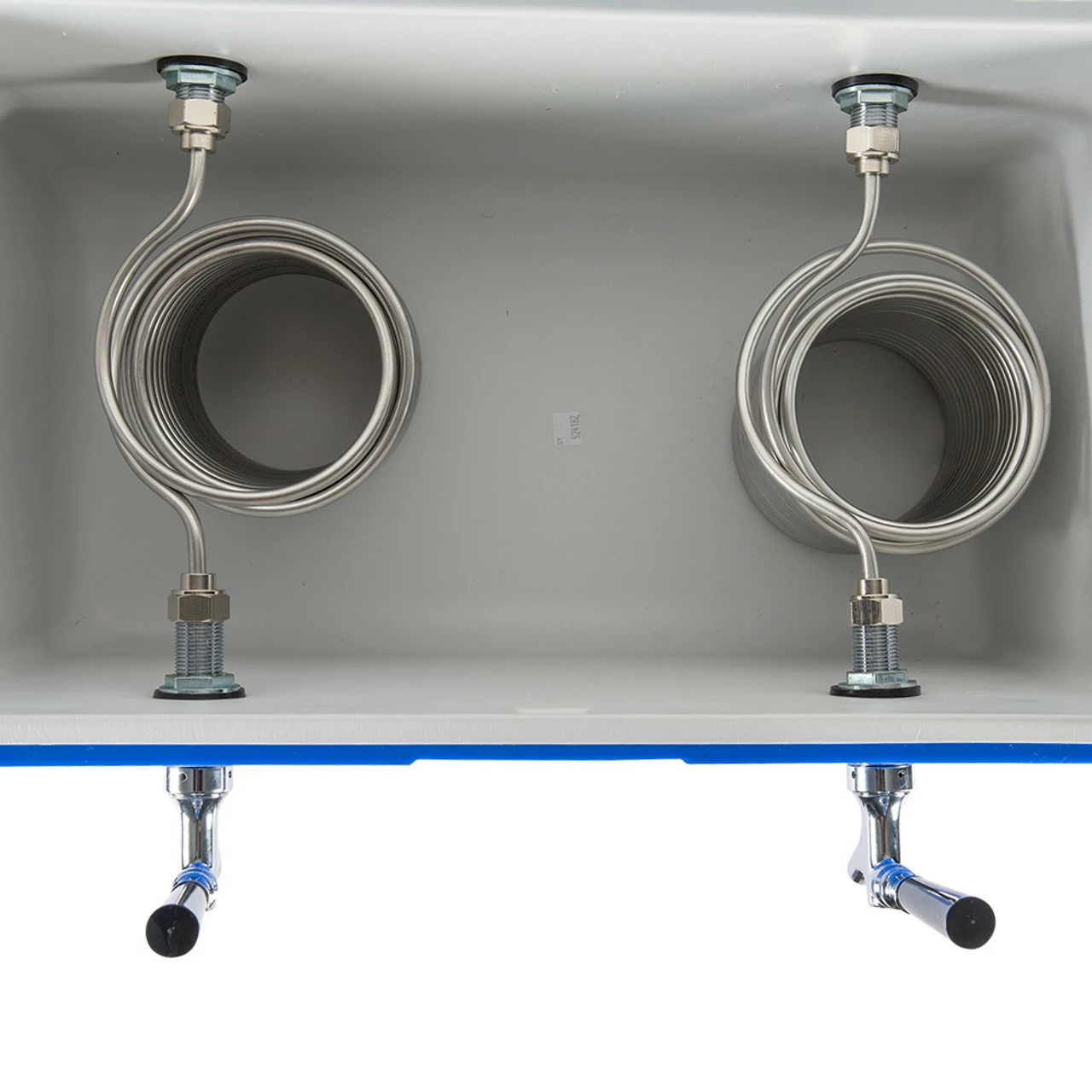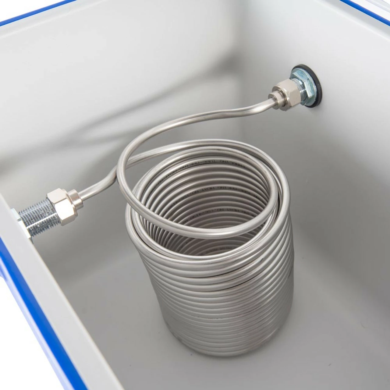 This 48 quart cooler has a fully-functional draft beer faucet and shank pre-assembled in its side. The two included 50-foot stainless steel jockey box coils should be kept in an ice bath to provide an ultimate refreshing experience with each effortless pour. Since the coils are made of stainless steel, they will not corrode over time if maintained and cleaned properly.