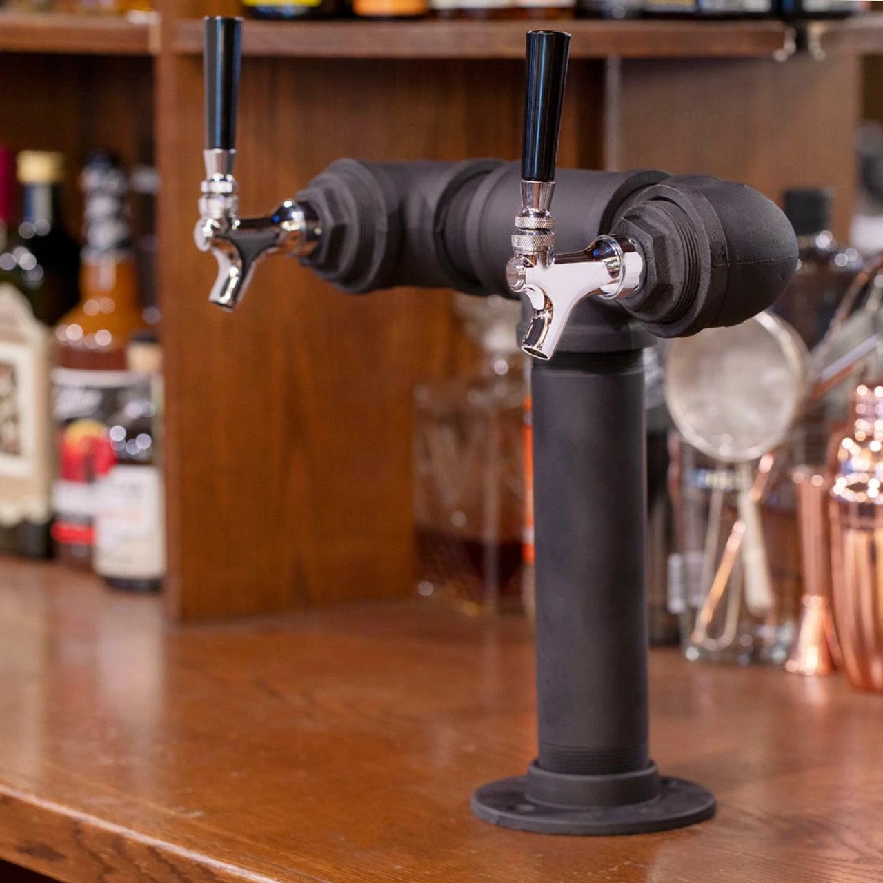 Upgrade your atmosphere with the industrial elegance of this unique double tap draft beer tower.
