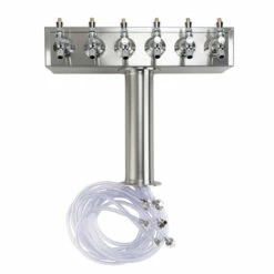 “T” Style Pedestal Draft Beer Tower – Stainless Steel – 3″ Column – Air Cooled – 6 Faucets