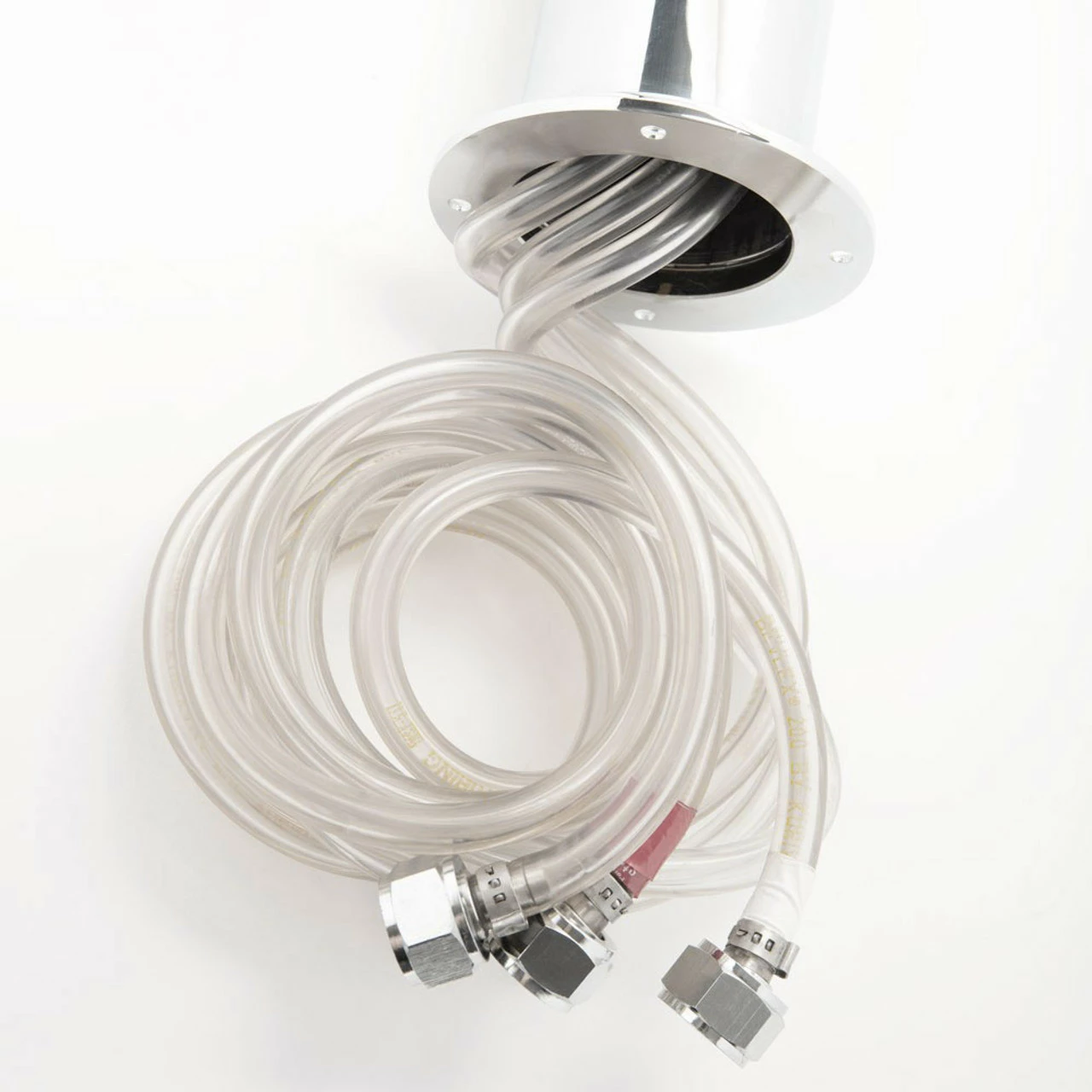 The beverage you pour with this tower will come into contact with only stainless steel components, including shanks and draft line fittings. This is the recommended setup for serving wine, cocktails, kombucha and coffee on tap. The stainless steel shanks and fittings will not corrode, and not taint the flavor of your beverages.ย