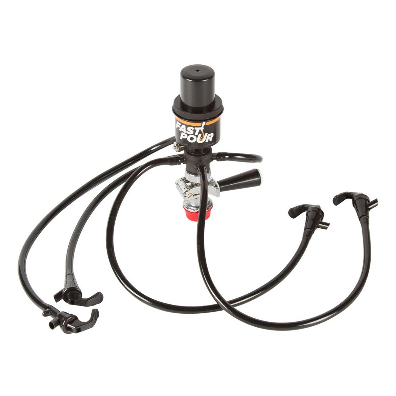 But this Fast Pour beer pump really sets itself apart by offering four plastic hoses and faucets for simultaneous pouring that cuts waiting time down to nearly nothing.