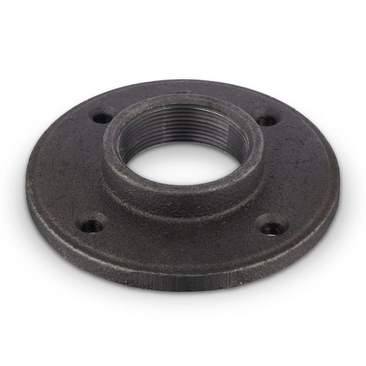 Much as it does with traditional bar rail tubing, this flange helps secure your industrial black pipe bar foot rail tubing to the floor via the that screws directly into the hole. You then connect either an or to the connector, and then the to the fitting.