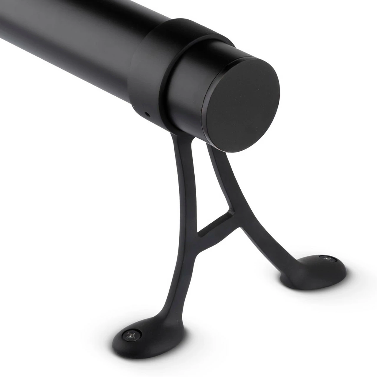 When mounted properly, the bar rail will sit 5.5″-6″ off the floor. With two contact points, this double-footed bar rail bracket will hold up well to long-term and heavy use. For proper support, bar brackets should be placed at each end of the tubing, plus one for every 4-foot increment. Be sure to measure precisely where to place the screws ahead of time.