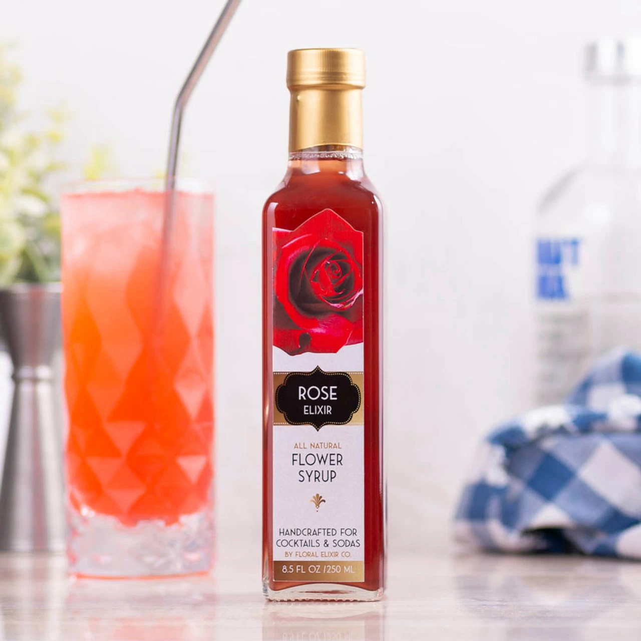 Floral’s Rose Elixir uses the extract of Damask roses and all-natural rose water to create a cocktail syrup that bursts with the flavor and aroma of fresh roses, floral honey and citrus. It pairs especially well with dry white wines, whiskey, tequila and rum and creates delightful champagne cocktails. Add to soda water and other non-alcoholic mixers to make delicious mocktails.