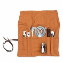 The Foster & Rye Canvas Cocktail Bar Tool Kit comes packed with a jigger, Hawthorn strainer, corkscrew/bottle opener, channel knife/zester, bar spoon, ice tongs, and wood muddler to give you the tools you need to craft some quality cocktails. All the tools fit nicely in the included canvas roll up so you take your bar tools to go.