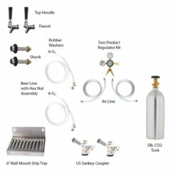 2 Faucet Tower Kegerator Conversion Kit – Stainless Steel Tower – US Sankey D System – No CO2 Tank
