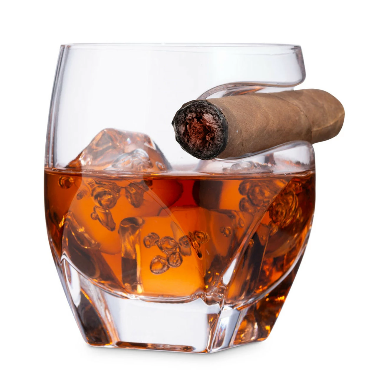 The Godinger Arturo Cigar Whiskey Tumblers are an excellent gift idea for dads, grads, and friends who enjoy the finer things in life. Handmade from clear, non-leaded crystal, these tumbler glasses with built-in cigar holders feature a unique design that is rounded at the top with an angled base. This makes for a sturdy glass that is comfortable to hold and provides the perfect sipping experience.