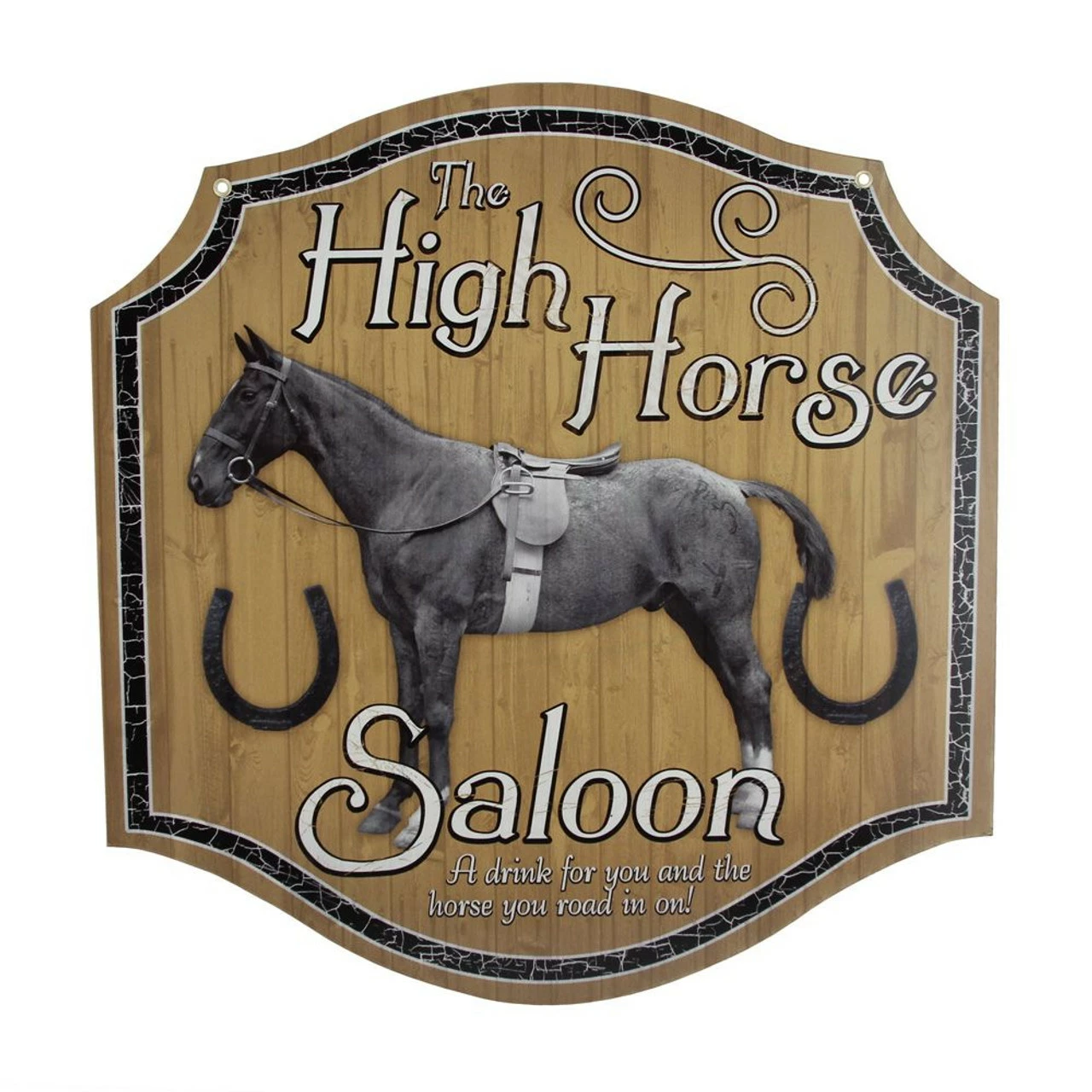 Put a little giddyup in your atmosphere. This funny bar sign is a great piece of home bar decor for any cowboy (or cowgirl), and gives off a great saloon feel.