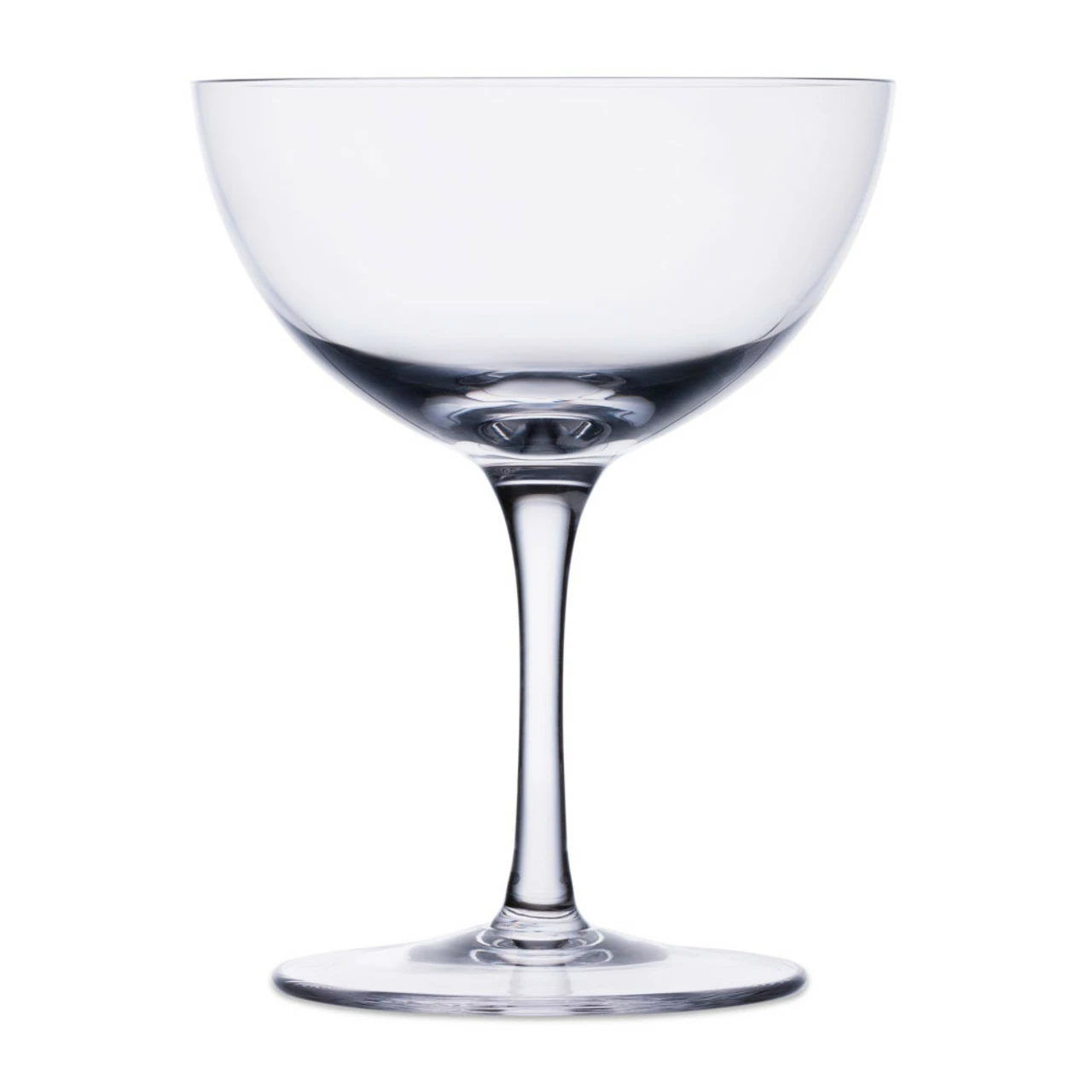 The 4.5 oz John Jenkins Atlantic Small Coupette Glass is ideal for serving champagne, cocktails (Martinis, Daiquiris, Margaritas), and even desserts! Made of clear glass in Europe, this coupette glass features a wide bowl and long stem as part of its premium design.