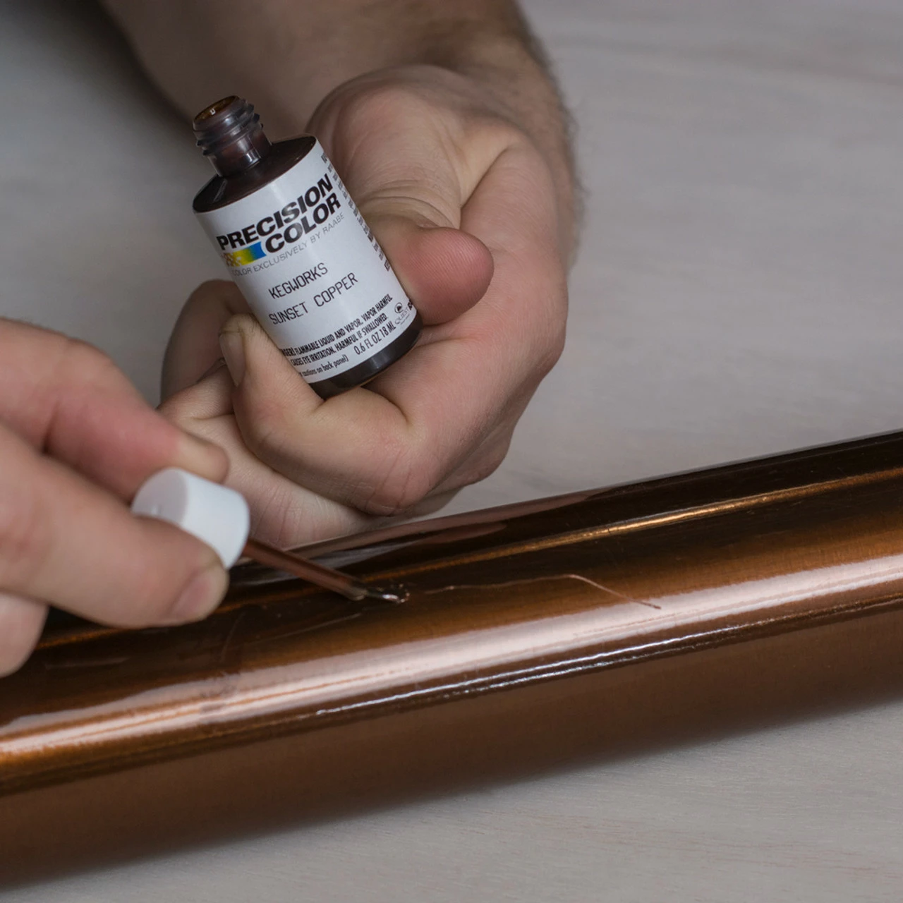 This .6-ounce bottle of copper metallic paint is specifically formulated to precisely match the color of all Sunset Copper powder coat products. With a brush-in-cap bottle, this exterior metal paint is very easy to use.