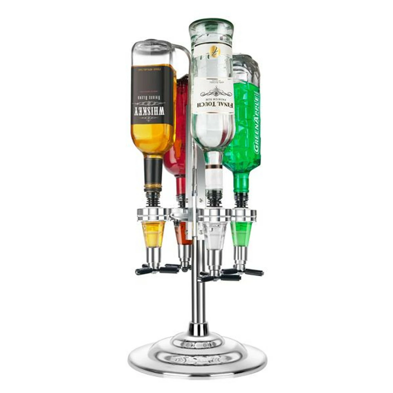 Free up counter space and cut down on liquor waste with this handy bar butler. Just place the trigger faucet into the top of the bottle, and then attach it to the sturdy aluminum frame. Gravity will do the rest as the shots flow for you and your guests. The weighted chrome finished base provides for steady serving. The upside down rotary liquor shot dispenser is a perfect addition to your home bar.