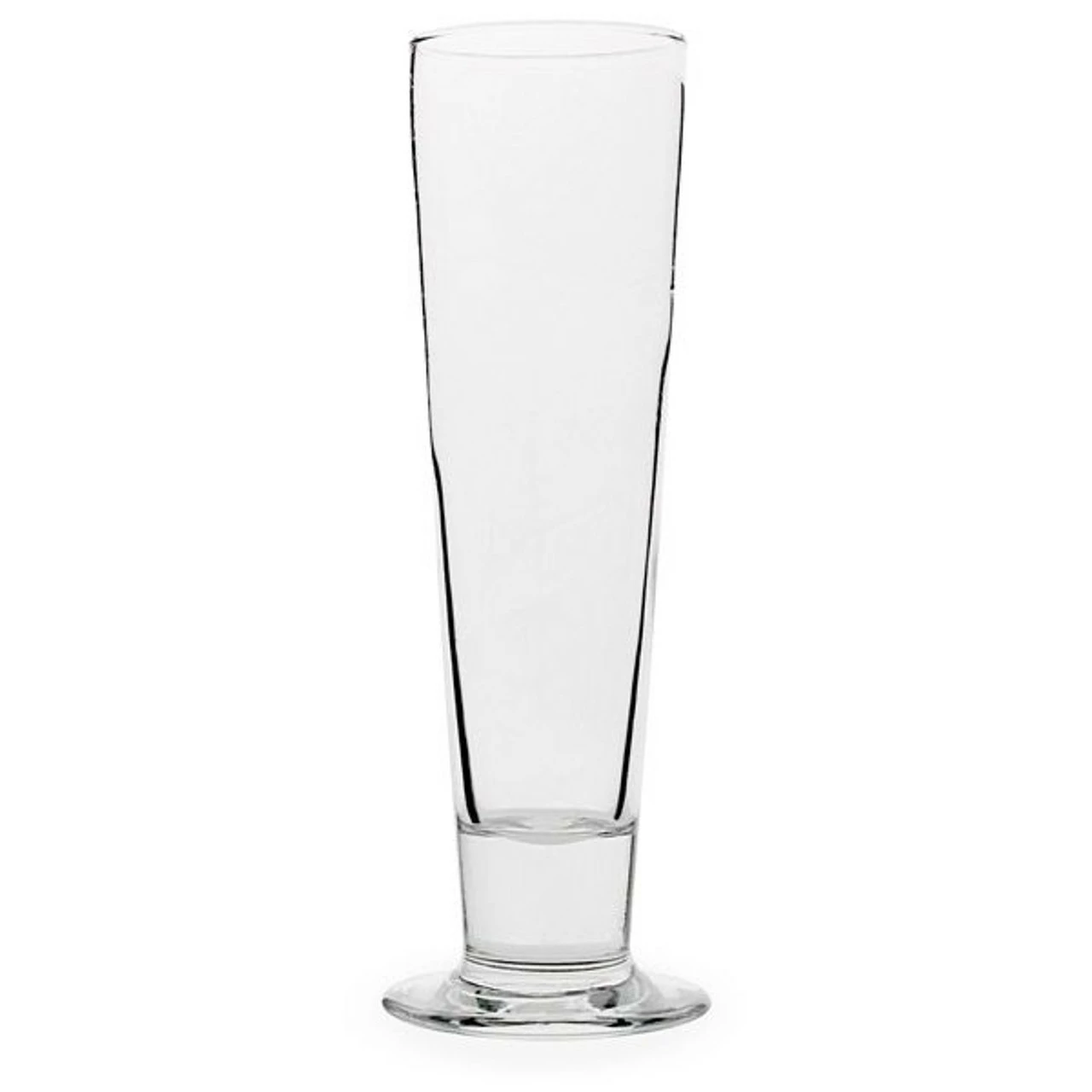 Made of durable, clear glass with a slim taper and footed bottom, this 14-ounce beer glass is specially designed to highlight the light color, bubbly effervescence, and crisp clarity of all your favorite pilsners. The long, tapered design is excellent for showing off and retaining a sturdy head of foam. The expels some of the carbonation in the beer, which enhances the flavor and leaves you feeling less full after you drink it.