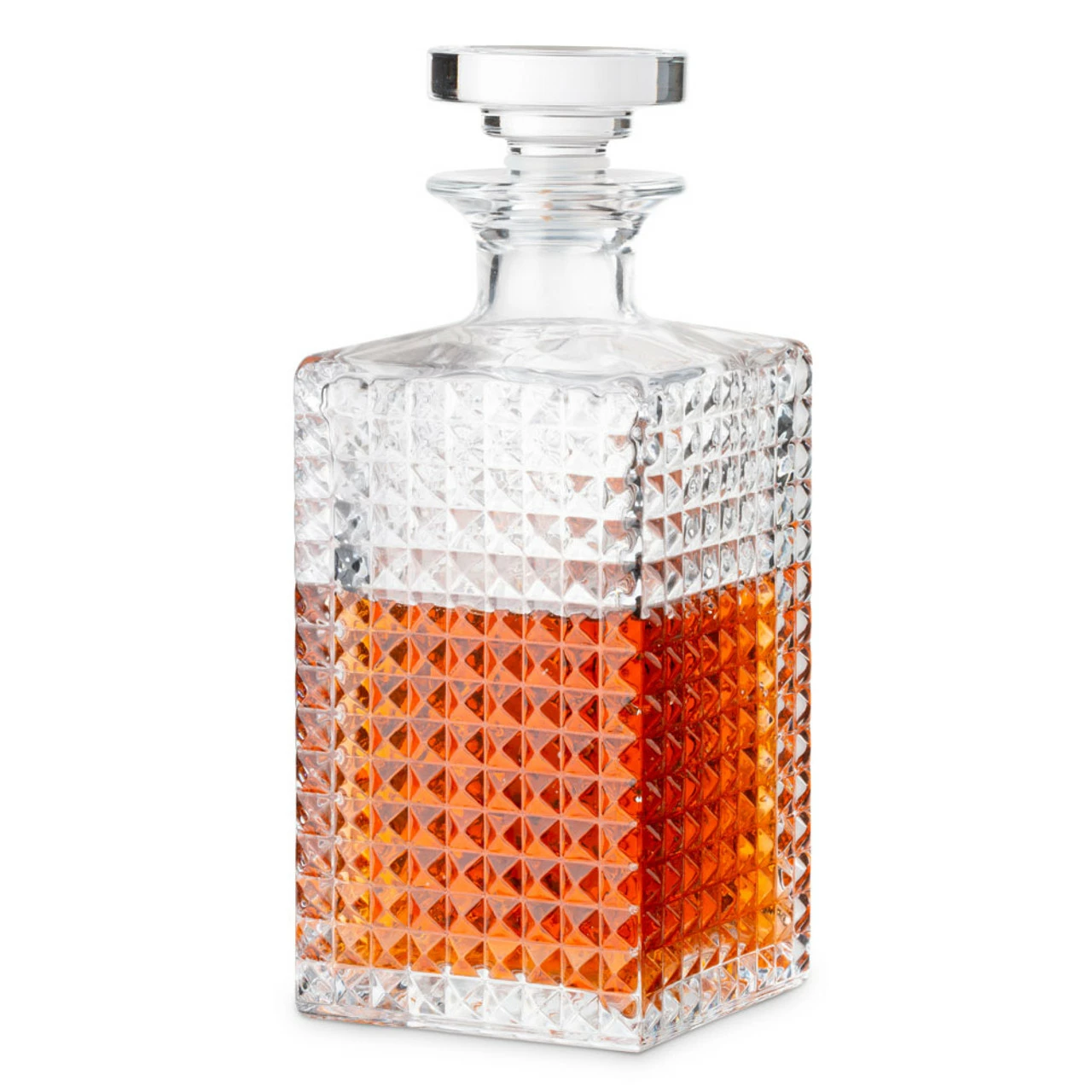 The four DOF tumblers (DOF means double old fashioned) in this set each hold 12.75 oz and feature a unique and eye-catching textured design around the outside. The matching decanter holds just over 25 oz, and is ideal for storing and pouring whiskey, bourbon, rum and tequila. The stopper provides an airtight seal to keep your liquor preserved.