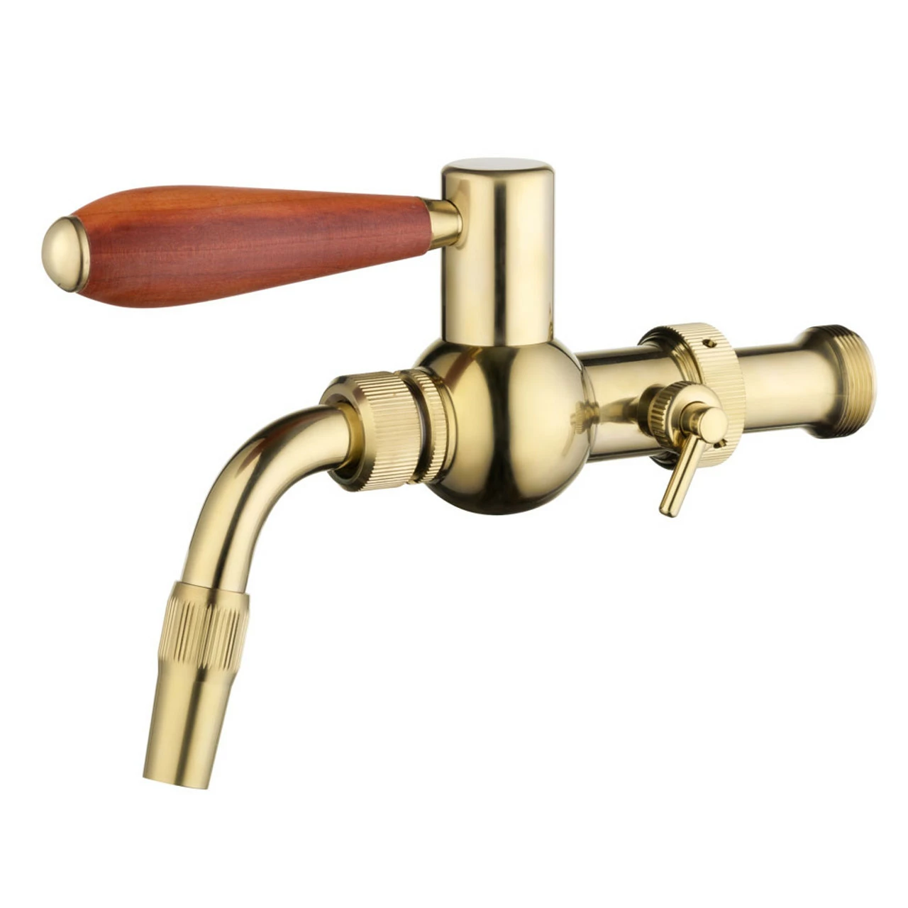 The Lukr Side Pull Faucet is constructed from stainless steel with nitride-titanium coating to give it its golden color. What makes this faucet truly unique is the side pull handle that allows you to have full control over your pour and a spout that you insert into the glass so you can recreate the traditional methods for pouring Czech Pilsners, most notably the Pilsner Urquell brand. An additional flow control knob on the side of the faucet allows for fine-tuning of your pour.