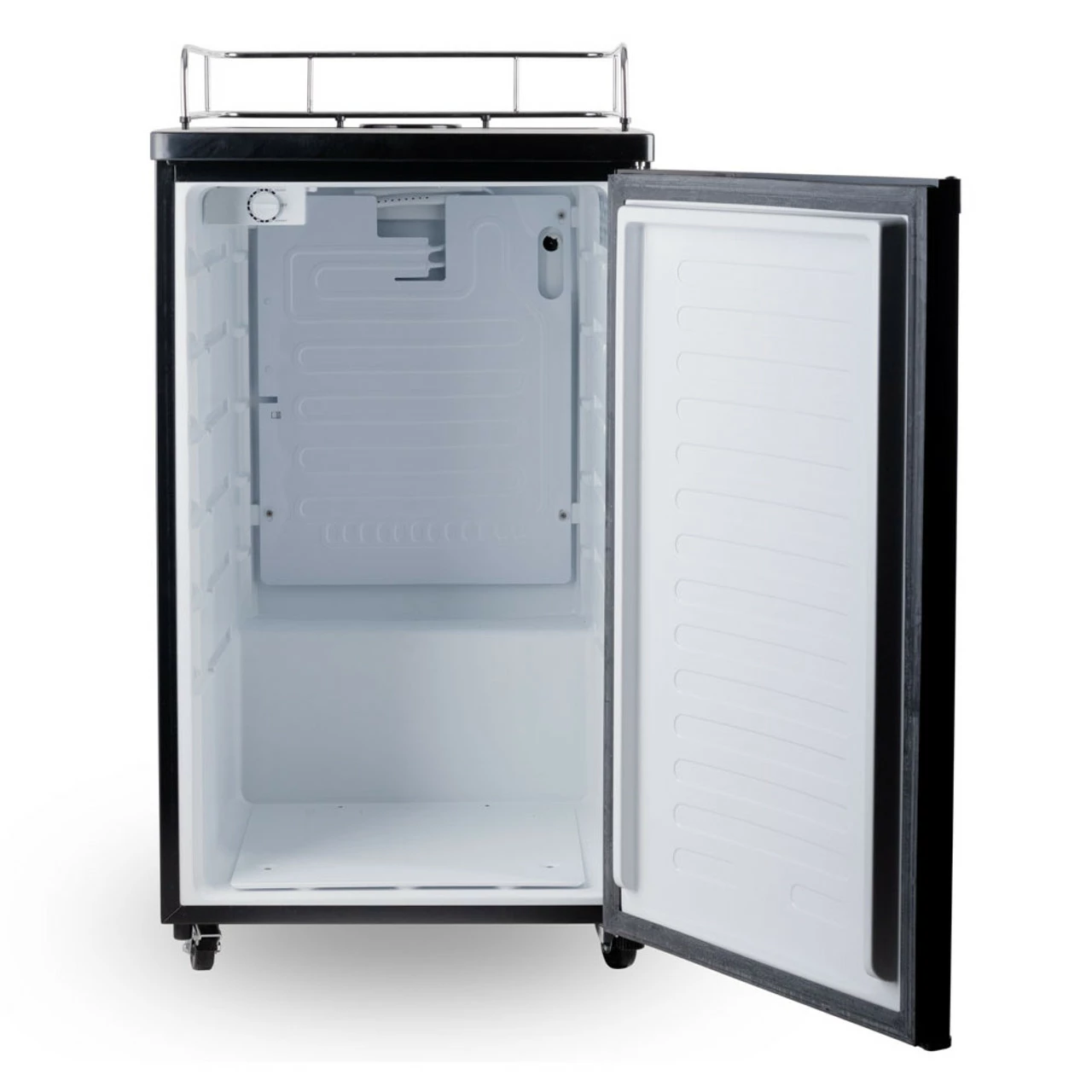 Included in this kit is a high-quality keg fridge, a removable drip tray to help keep spills from causing too much of a mess, casters to wheel your custom kegerator wherever you need it, and a chrome guard rail at the top of the fridge.