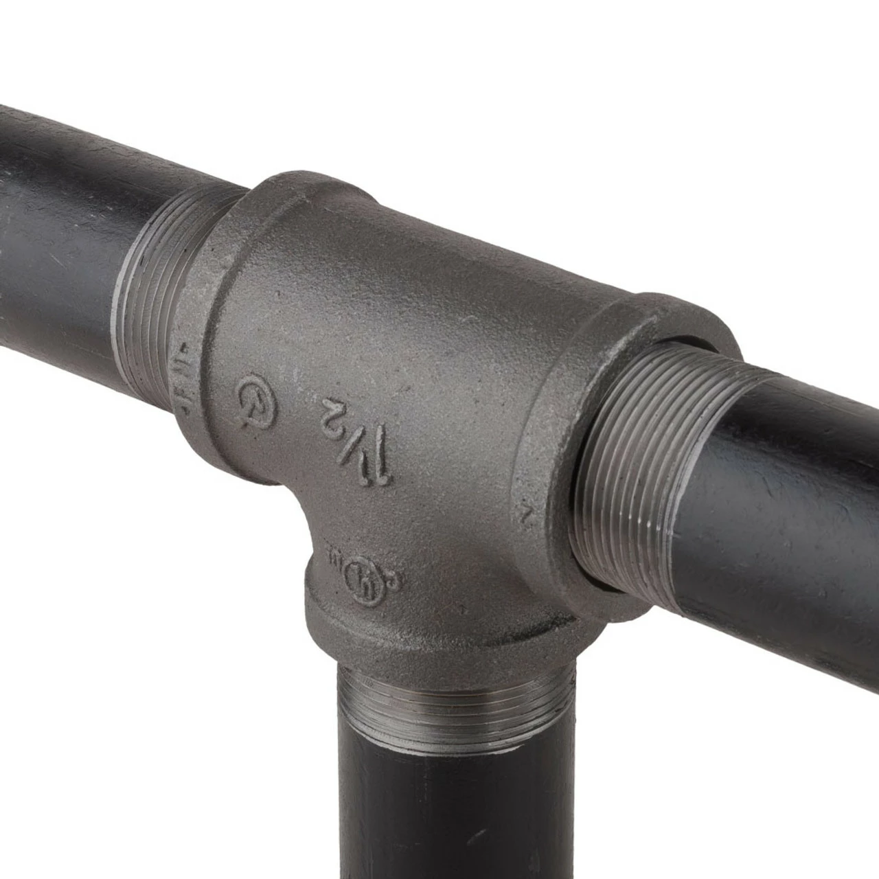 This tee fitting, made from the same solid industrial metal as the pipe itself, helps connect two lengths of black pipe to create an eight-foot bar rail. Its tee design also allows you to connect your bar rail to a flange on the floor.