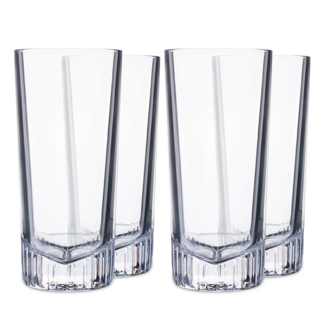 The hallmark of these long drink cocktail glasses is their base, which features a deep V-shape with vertical cut lines. It really makes the glasses stand out whether they’re sitting behind your bar or on a table or counter. Made from lead-free crystal, the Nude Glass Caldera Cocktail Glasses are the ideal drinkware for enjoying highballs, mojitos and other long drinks with plenty of ice.