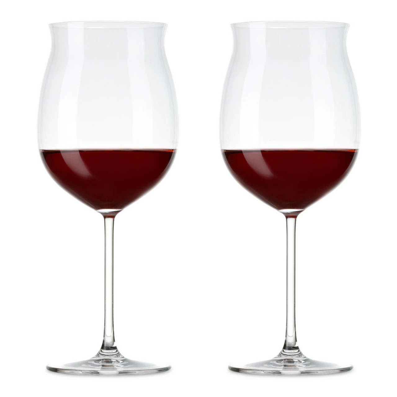Handmade of clear, non-leaded crystal, these 24.5 oz Burgandy red wine glasses provide you with the ultimate drinking experience as they deliver concentrated aroma and flavor to your senses. The ample, rounded bowl is pinched in the middle to boost the bouquet, while the gently flared rim serves to concentrate the flavors.
