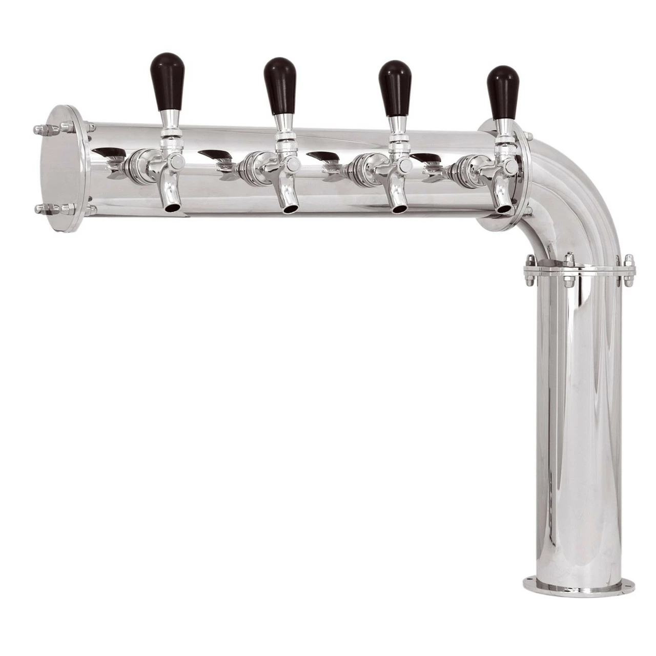 - L-style (single pedestal) draft beer tower with 3, 4, or 5 faucets