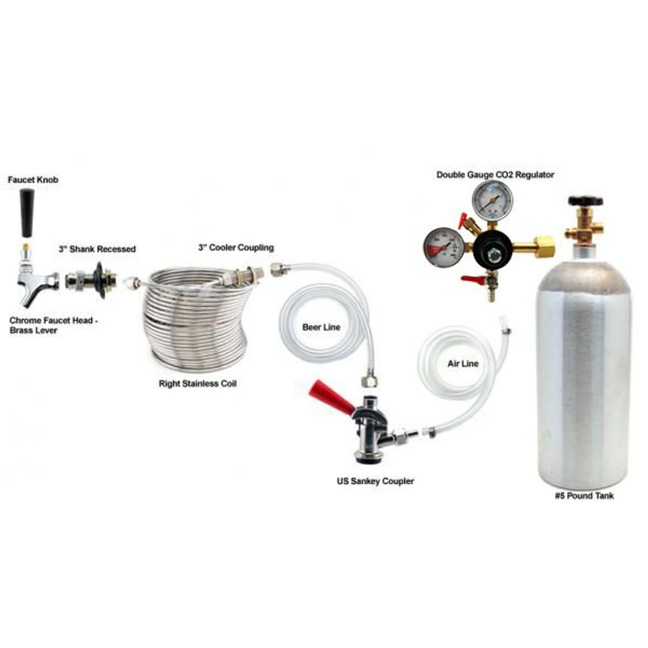 - Beer/Air Line Dimensions: 5’L