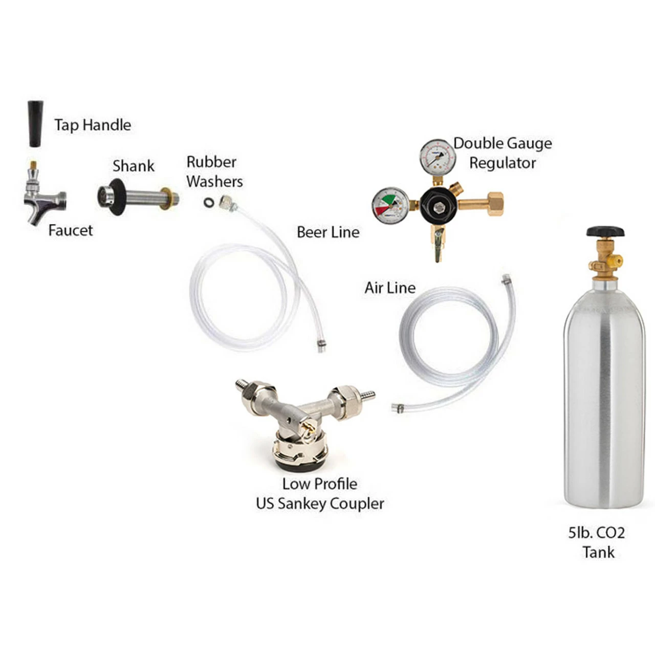 With this kit, you’ll also get everything else you need to convert a refrigerator into a draft beer dispensing system for your home or office, including a CO2 tank, faucet head and knob, regulator, as well as all line, connectors, and washers.