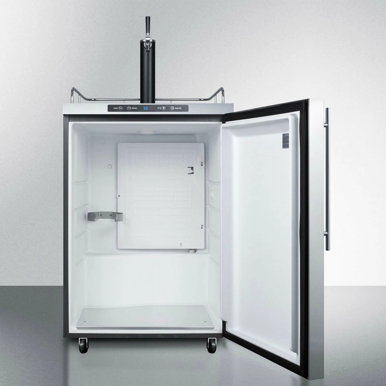 - Capacity for a single 1/2 or 1/4 barrel keg, or two 1/6 barrel kegs
