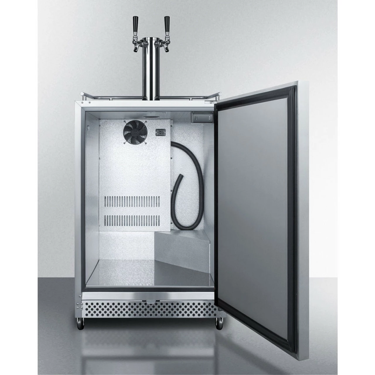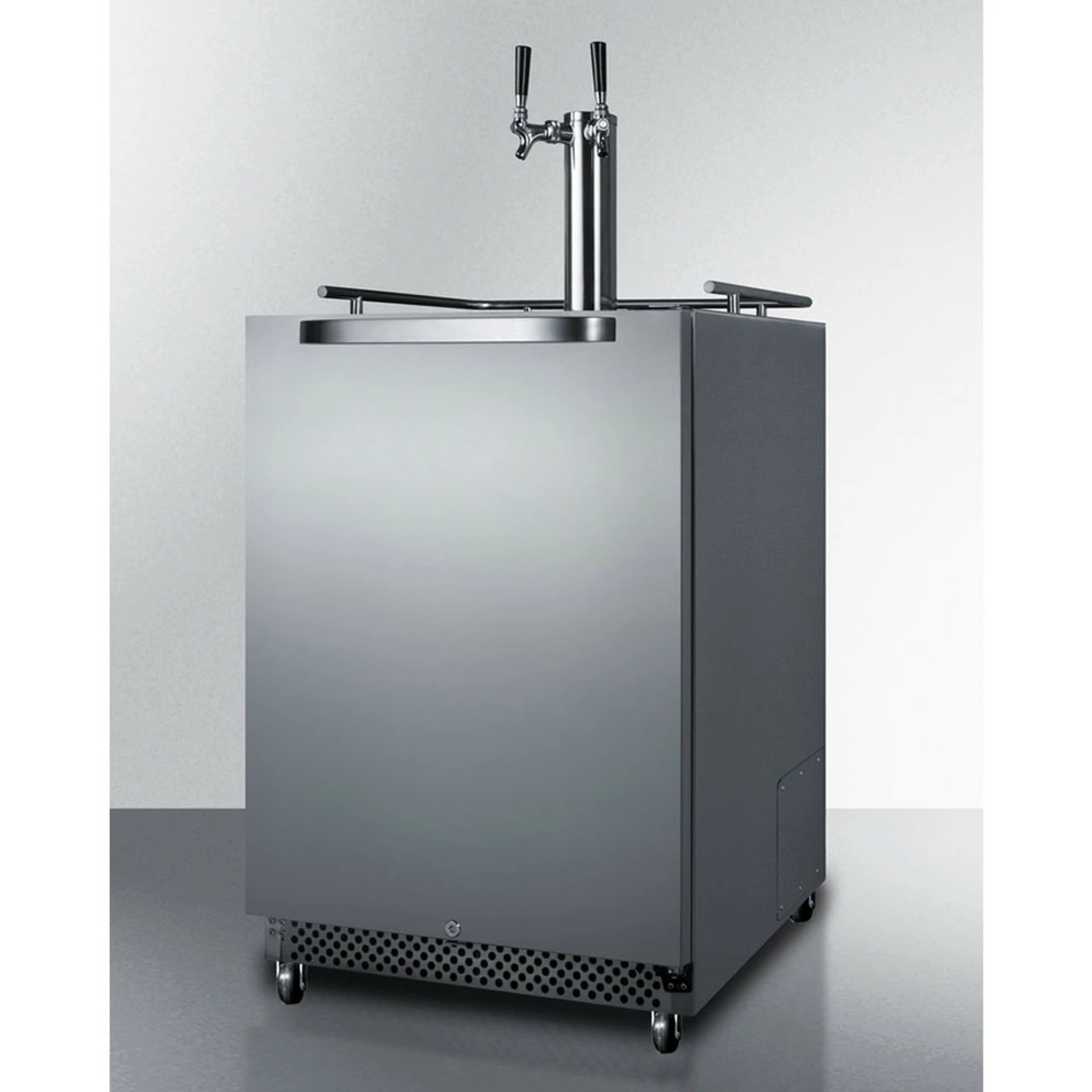 With a flexible design allowing for built-in or freestanding use in 24″ spaces, casters on the bottom for easy transport, and weather resistance, your home or commercial kegerator is unstoppable, ready to roll in any location.