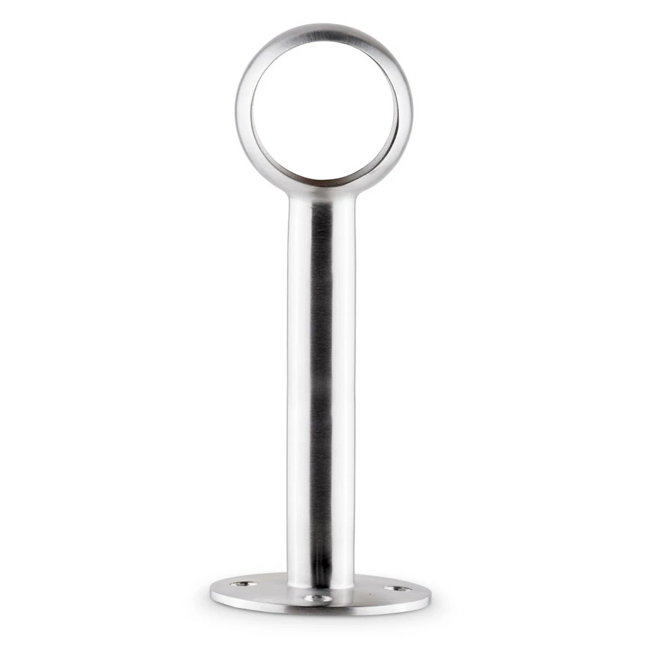 Tall rounded center post brackets are a stylish and sturdy option for supporting metal bar rail tubing for foot rail or handrail. Each post can be mounted directly to your floor, wall or bar facing, which makes it easy to plan your project and install your bar rail tubing. This taller design is the perfect addition for a bar or kitchen that includes higher-seating, or to help the vertically-challenged to reach their feet to the bar rails.