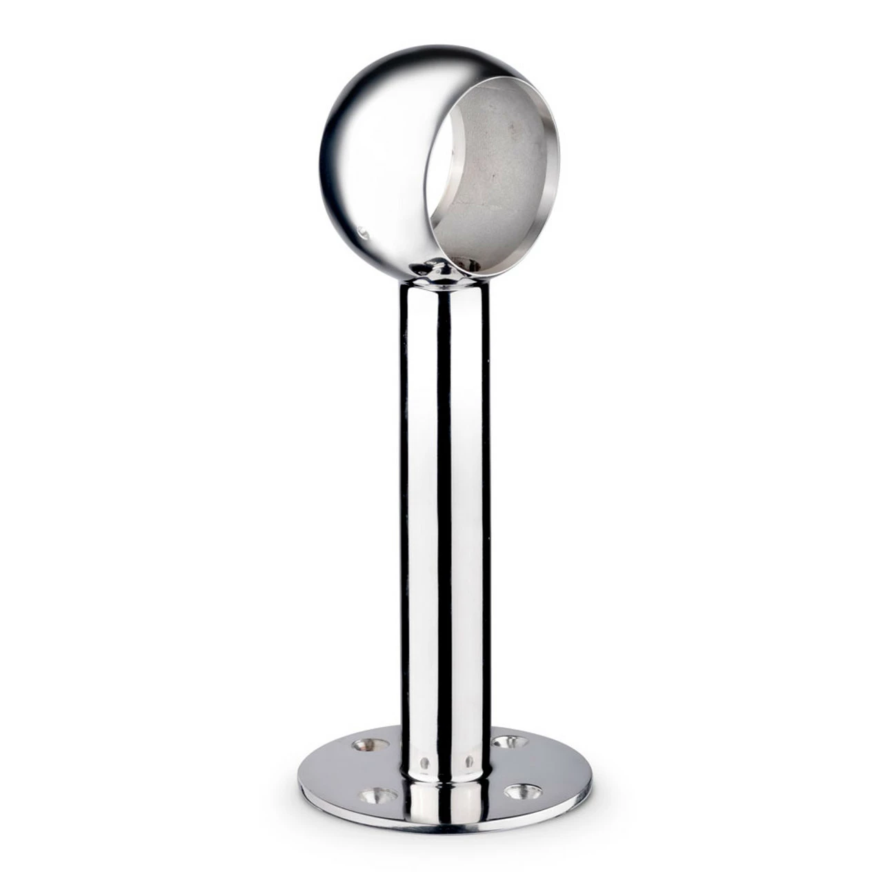 Tall rounded center post brackets are a stylish and sturdy option for supporting metal bar rail tubing for foot rail or handrail. Each post can be mounted directly to your floor, wall or bar facing, which makes it easy to plan your project and install your bar rail tubing. This taller design is the perfect addition for a bar or kitchen that includes higher-seating, or to help the vertically-challenged to reach their feet to the bar rails.