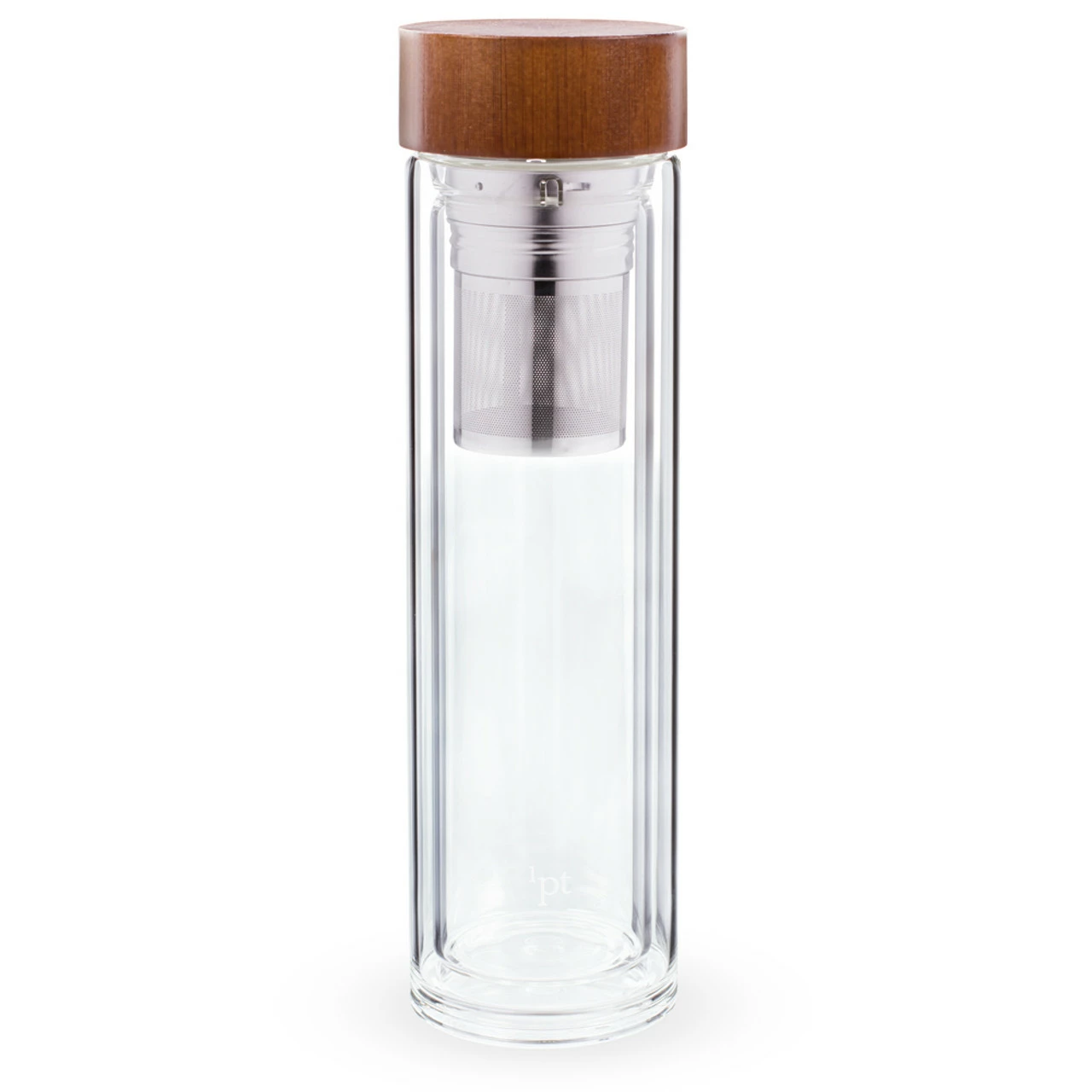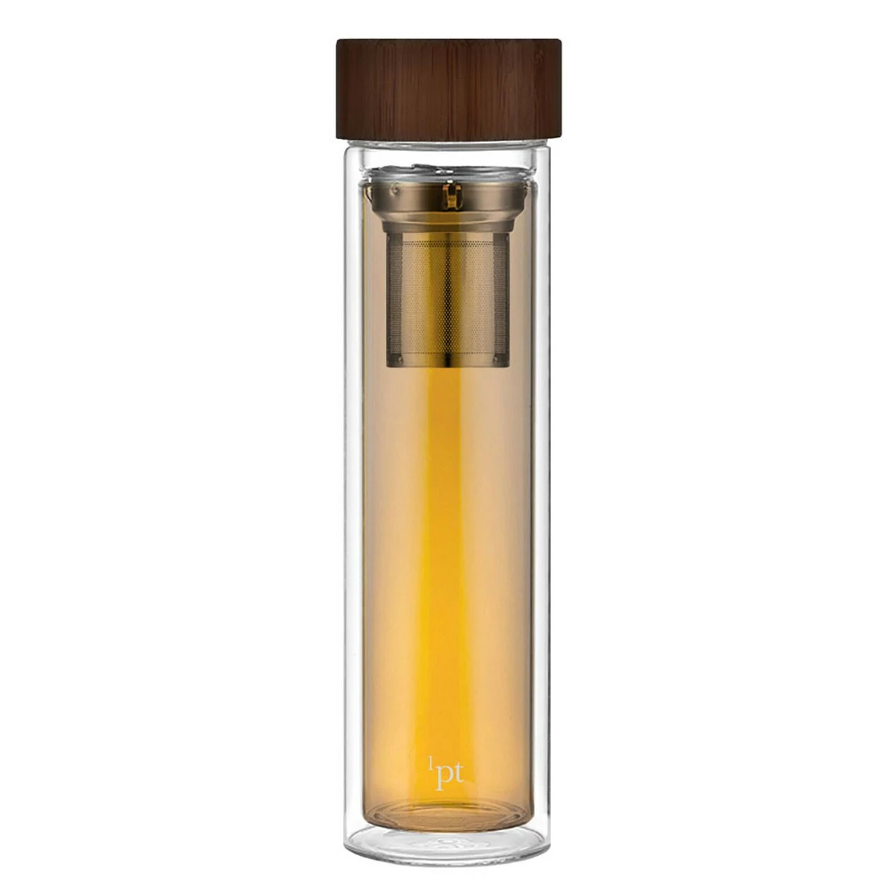 - The infusion bottle is made of high-durability lab glass with a walnut-finish cap and a stainless steel infusion basket