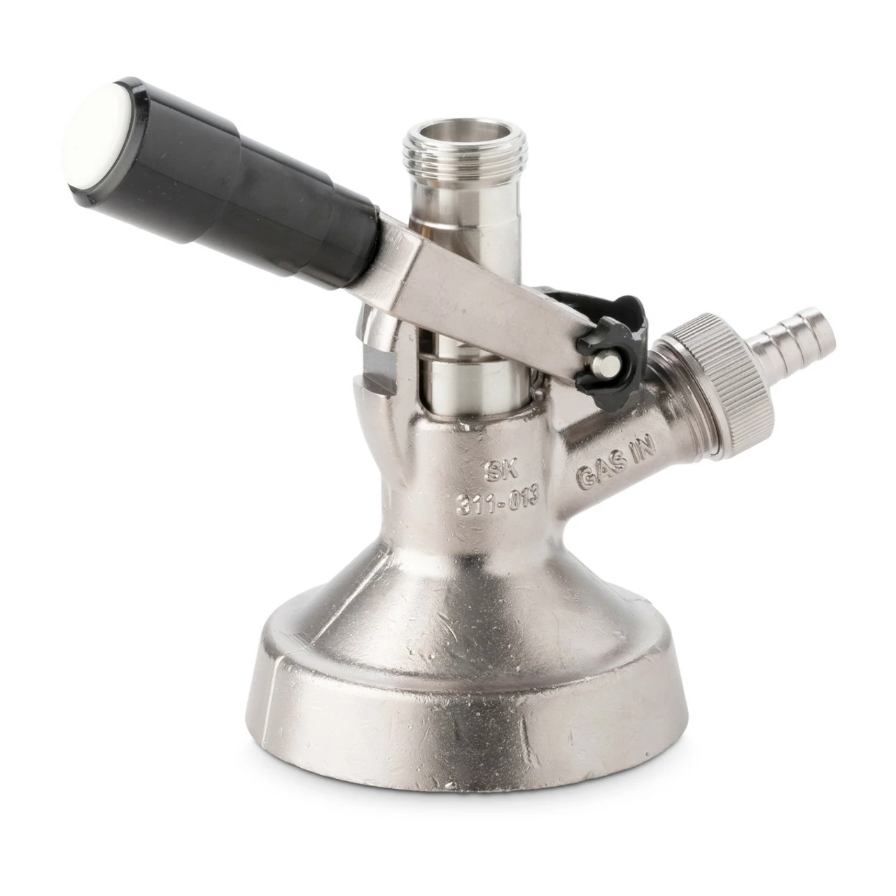Simply put, your draft beer dispensing will be a failure without the right keg coupler. On any draft beer system, the coupler, or keg tap, allows the gas tank to supply pressurized CO2 into the keg. You attach the bottom of the coupler to the keg valve, the gas line to the side hose nipple, and the beer line on top of the coupler. When in use, the result is beer being pushed up the beer line toward the draft faucet.