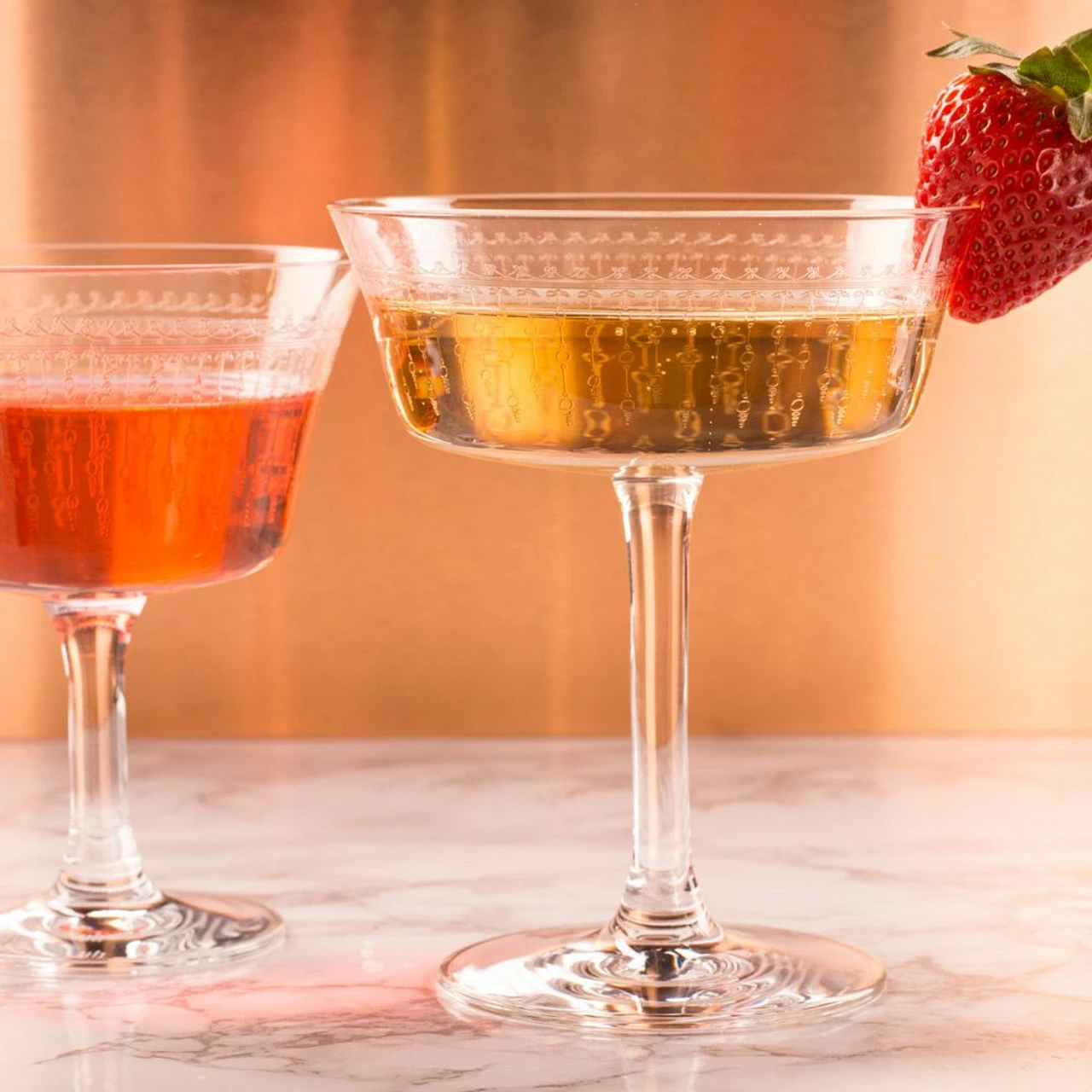 Carefully crafted in Europe from non-leaded crystal, these intricately etched glasses encourage your guests to savor their drinks. Use them to serve shaken or stirred “up” cocktails like daiquiris, Manhattans, martinis, and sidecars. Their design also make them a fun option for serving desserts.